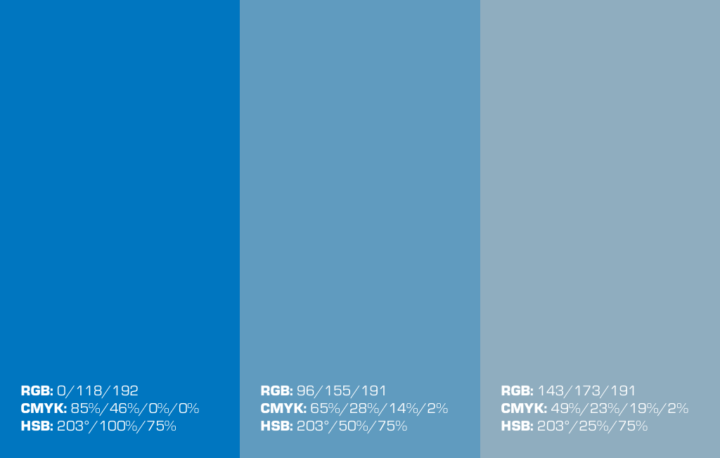 Die Primärfarben von CODEXBLAU bilden die Grundlage des Erscheinungsbildes. Sie umfassen:
